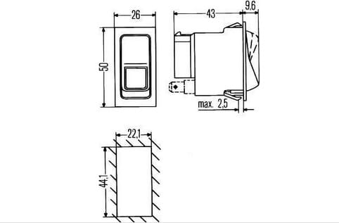wymagane wymiary otworu montażowego: 22.1 x 44.1 mm