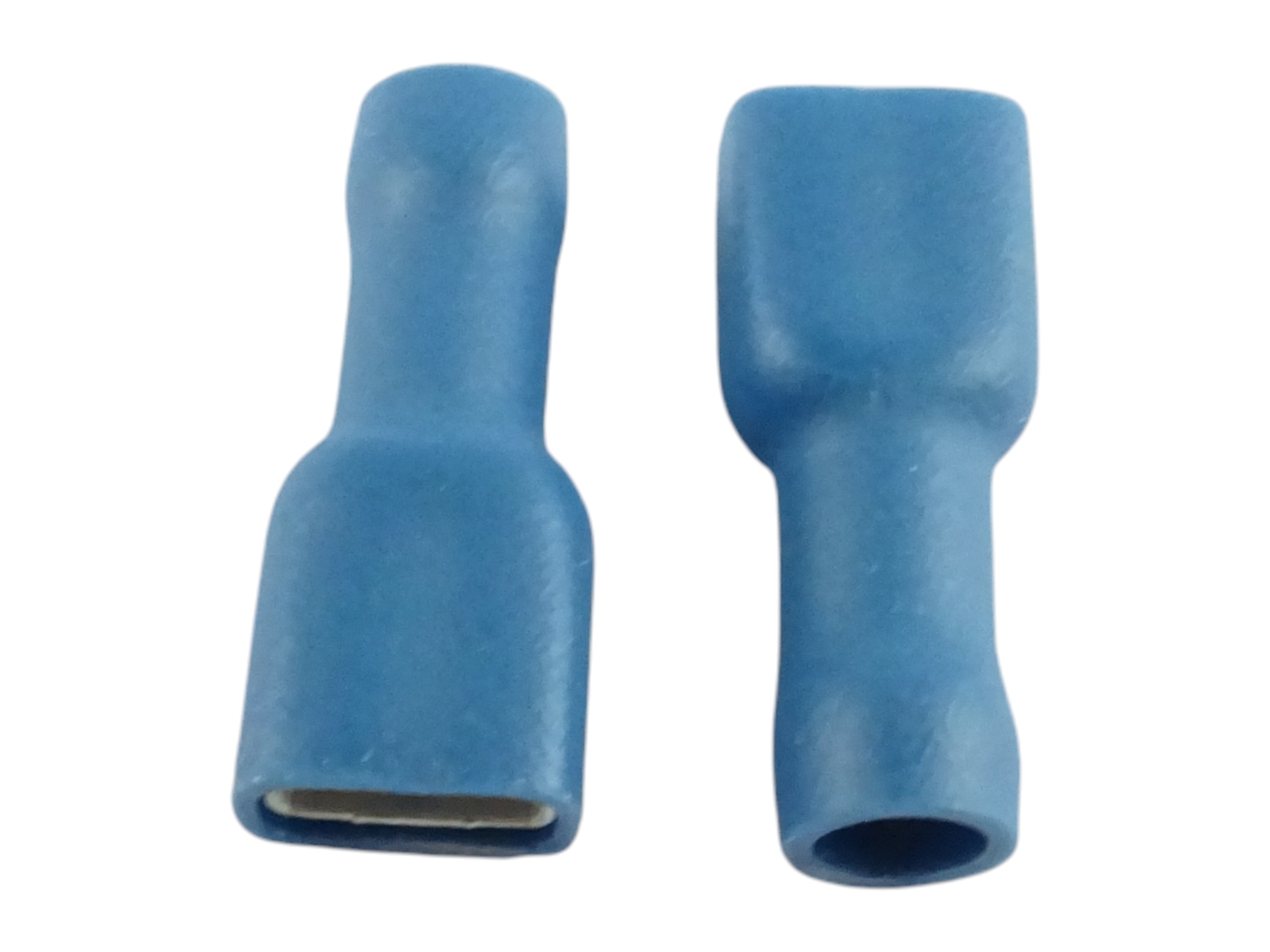 Niebieska złączka kablowa wsuwka 6,3 mm z pełną izolacją PCW, przeznaczona do przewodów o przekroju 1,5–2,5 mm². Wykonana z mosiądzu z powłoką cynowaną, zapewnia trwałe, odporne na korozję połączenie w instalacjach elektrycznych pojazdów, maszyn oraz urządzeń przemysłowych.